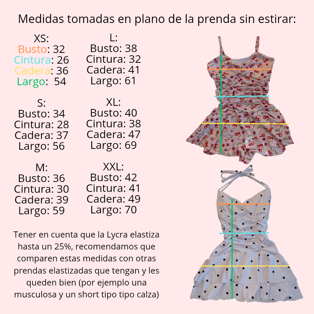ACLARACION: todas nuestras telas son elastizadas, por lo que te recomendamos no ser tan estricta con los números. Por ejemplo: si una prenda dice 90cm de cintura y tenes 92cm, quédate tranquila que te va a quedar bien!